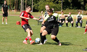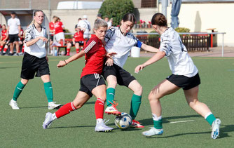 beide Mannschaften, ohne nennenswerte Torgefahr zu entwickeln. Unmittelbar nach dem Trinkpausen-Wiederanpfiff nutzte Germania seine erste Chance eiskalt: Kapitänin Lea Nitschke bewies Übersicht